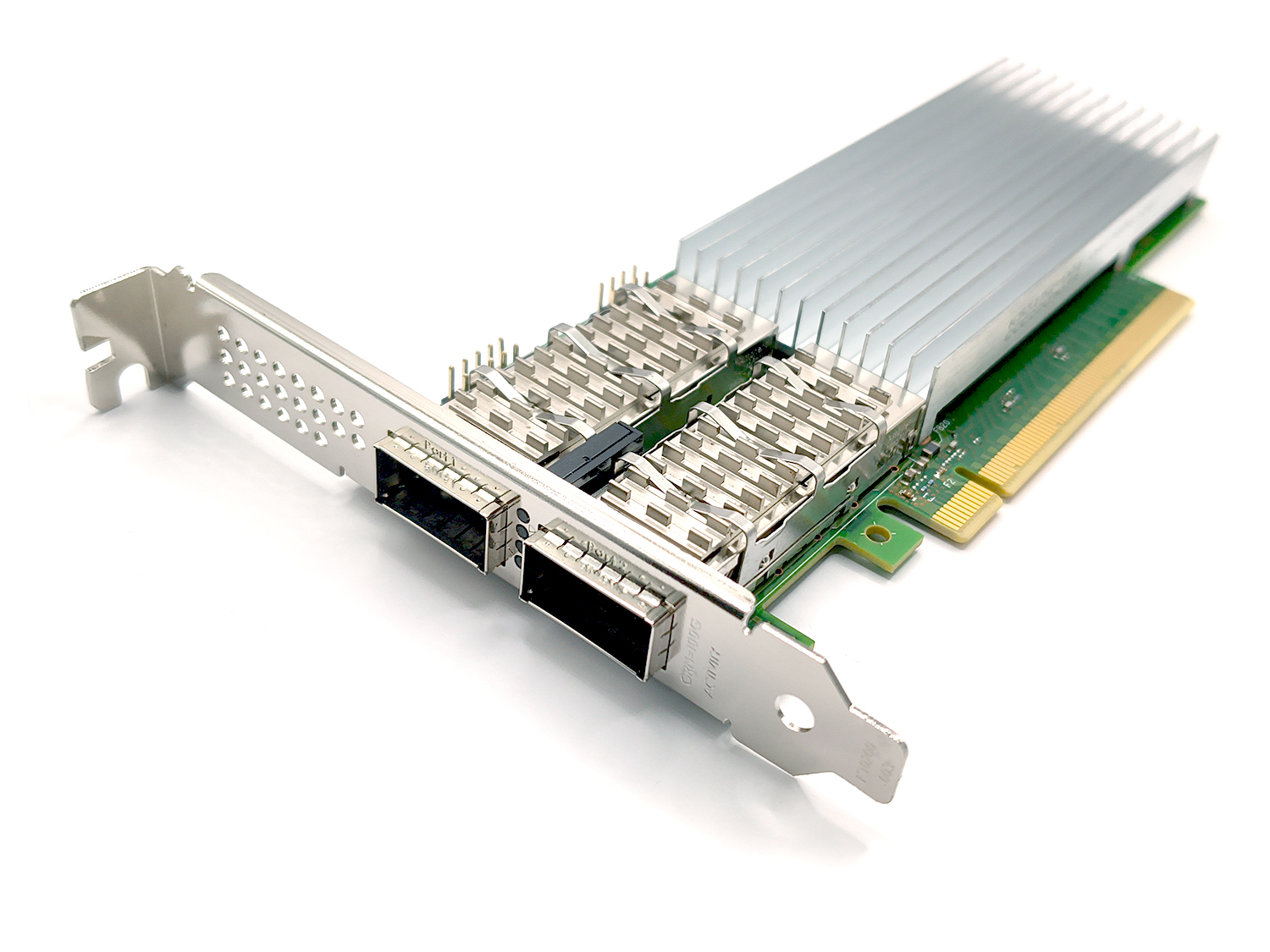 - Die Karte verfügt über einen PCIe x16 4.0 Anschluss und 2 QSFP28 Ports.