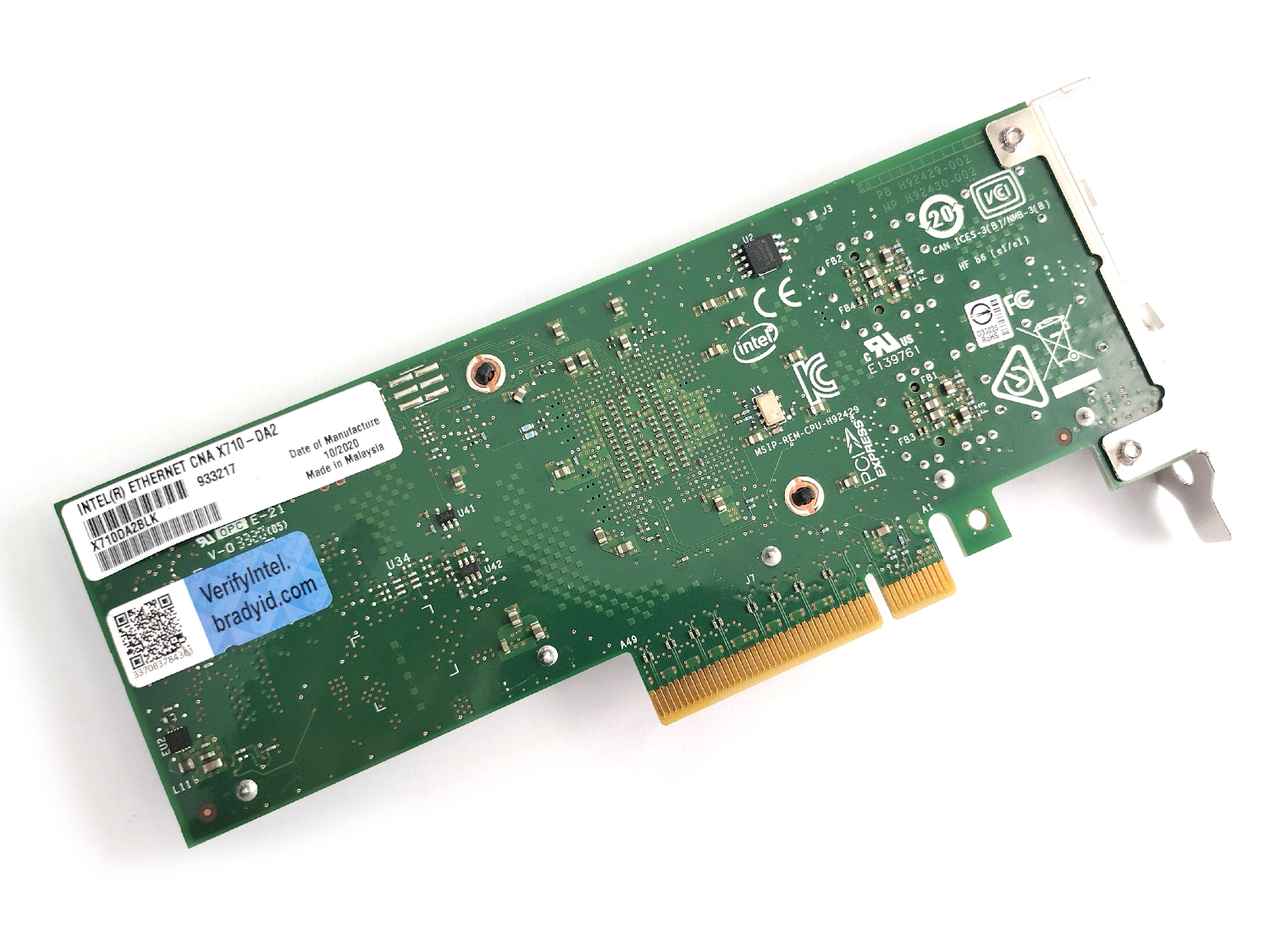Es handelt sich um eine professionelle Intel X710-DA2 10Gbit Dual Port Netzwerkkarte, geeignet für den PCIe x8 Anschluss. Die zwei SFP+ Ports können mit Transceiver-Modulen oder Kabeln genutzt werden. Die Karte wird passiv gekühlt, ein zusätzlicher Lüfter ist nicht nötig.