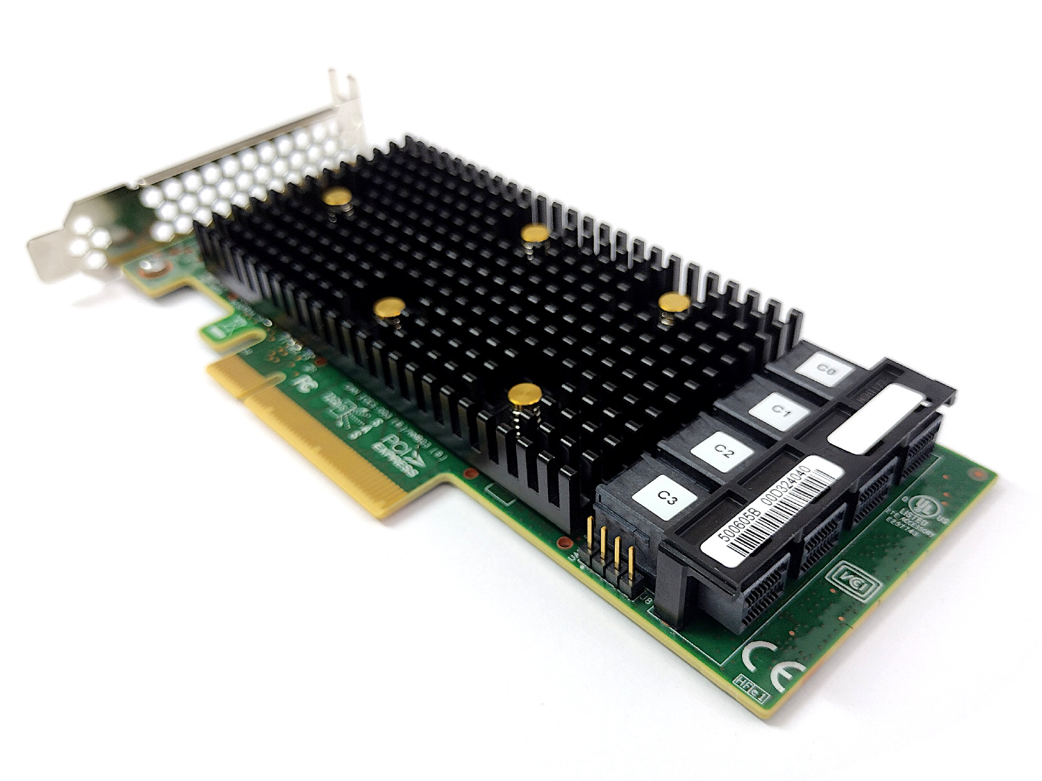 - Anschlüsse: PCIe x8 3.0, 4x miniSAS SFF-8643 Anschluss für maximal 16 SATA / SAS Laufwerke bzw. 4 NVMe Laufwerke intern.